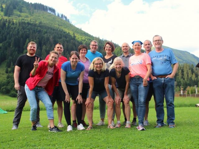 Am letzten Juli-Wochenende ging es nach Bichlbach in Tirol zum diesjährigen Wanderwochenende.  Ein schönes Selbstversorgerhaus war von Freitag bis Sonntag unser Zuhause. Nachdem sich nach der Anreise am Freitag alle an leckeren Älplermakronen gütlich getan hatten, gab es einen gemütlichen Abend mit Dart und Gesprächen. Am Samstag war nach dem Frühstück Wandern angesagt. Nach der Diskussion um Ziel und Umfang der Wanderung war klar, dass die Bedürfnisse nach Höhe und Strecke sehr unterschiedlich waren. So gab es mehrere Gruppen (auch ein Mountainbiker und eine Faulenzerin waren dabei) und alle kamen auf ihre Kosten. Ab dem Nachmittag trudelten alle Aktiven so nach und nach wieder ein und beim Grillabend gab es mal wieder viel zu essen, zu trinken, zu quatschen und zu lachen. Sonntag nutzten wir die Gelegenheit und waren bei trockenem Wetter im Naturfreibad. Freileich bei nicht einmal 20 Grad weniger zum Baden als zum Beachen, Wikingerschachspielen, Faulenzen und Minigolfspielen – so war auch da für jeden etwas dabei! Vielen Dank an alle, die zu diesem schönen gemeinsamen Erlebnis beigetragen haben.
